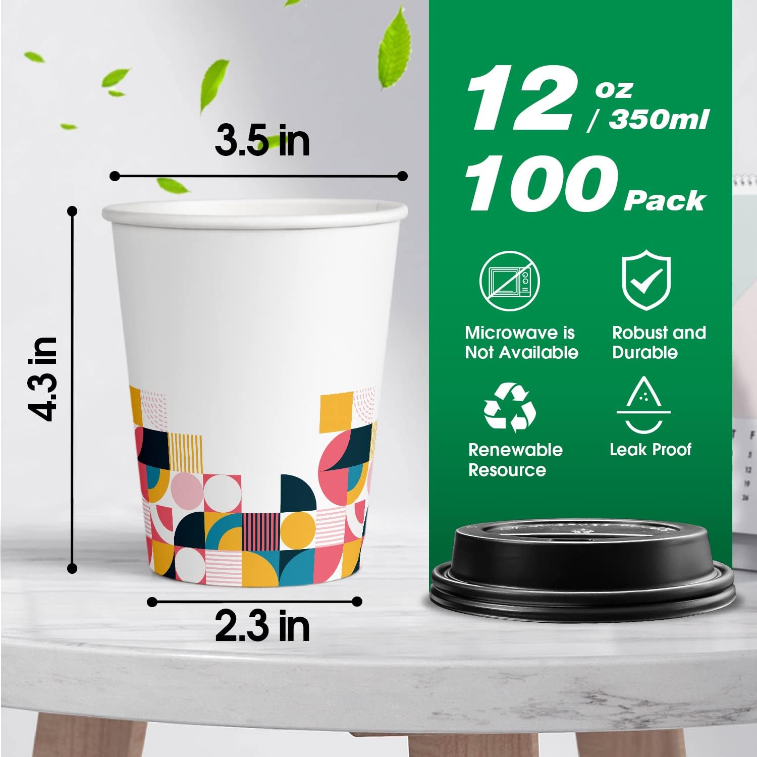 - 12 oz Coffee Cups Set: You will receive 100 packs of paper cups and black matching cup lids. You can enjoy your beverages at home,office,travel,restaurants, events,cars and more.