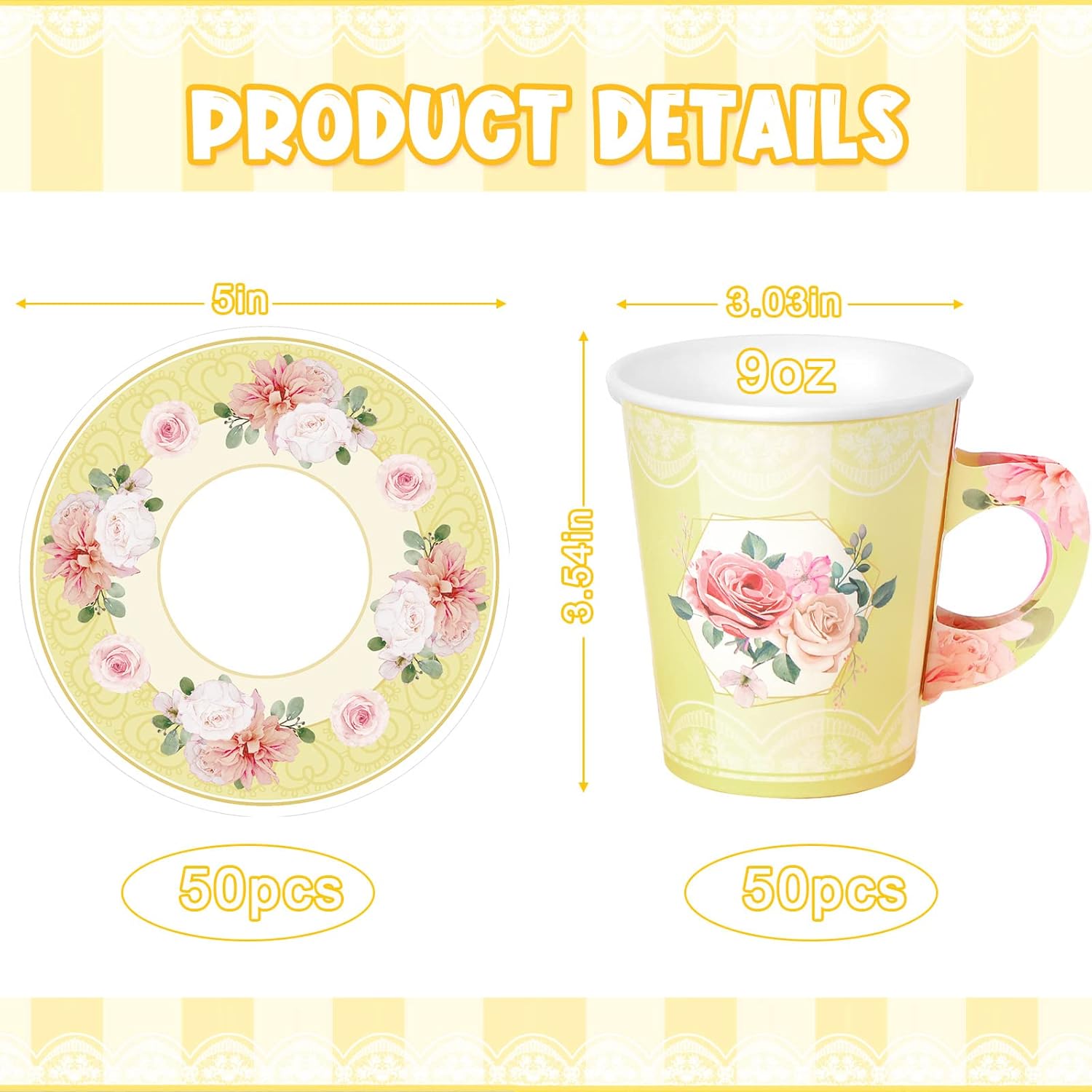 - Satisfy Party Supplies Needs: you will get 50 pieces of paper teacups and 50 pieces of paper plates, the sufficient amount is easy to meet your party supply needs, they are nice additions for your tea themed parties, and will add a sweet touch to your table decorations