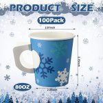 - Sufficient Quantities: what you will receive are 100 pieces of snowflake paper cups with handles in 4 different patterns, each pattern has 25 pieces; Sufficient quantities and diverse patterns make them well satisfy your daily use needs, ideal choices for your winter holiday party