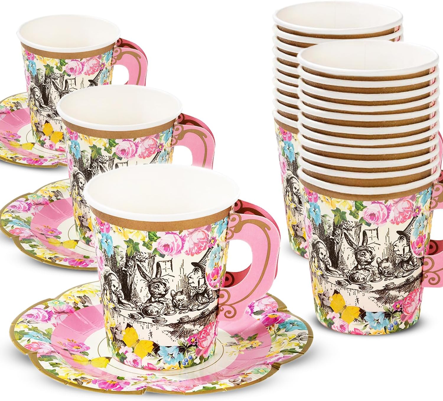 - make time for tea and delight you guests with these beautifully illustrated alice in wonderland themed party cups
