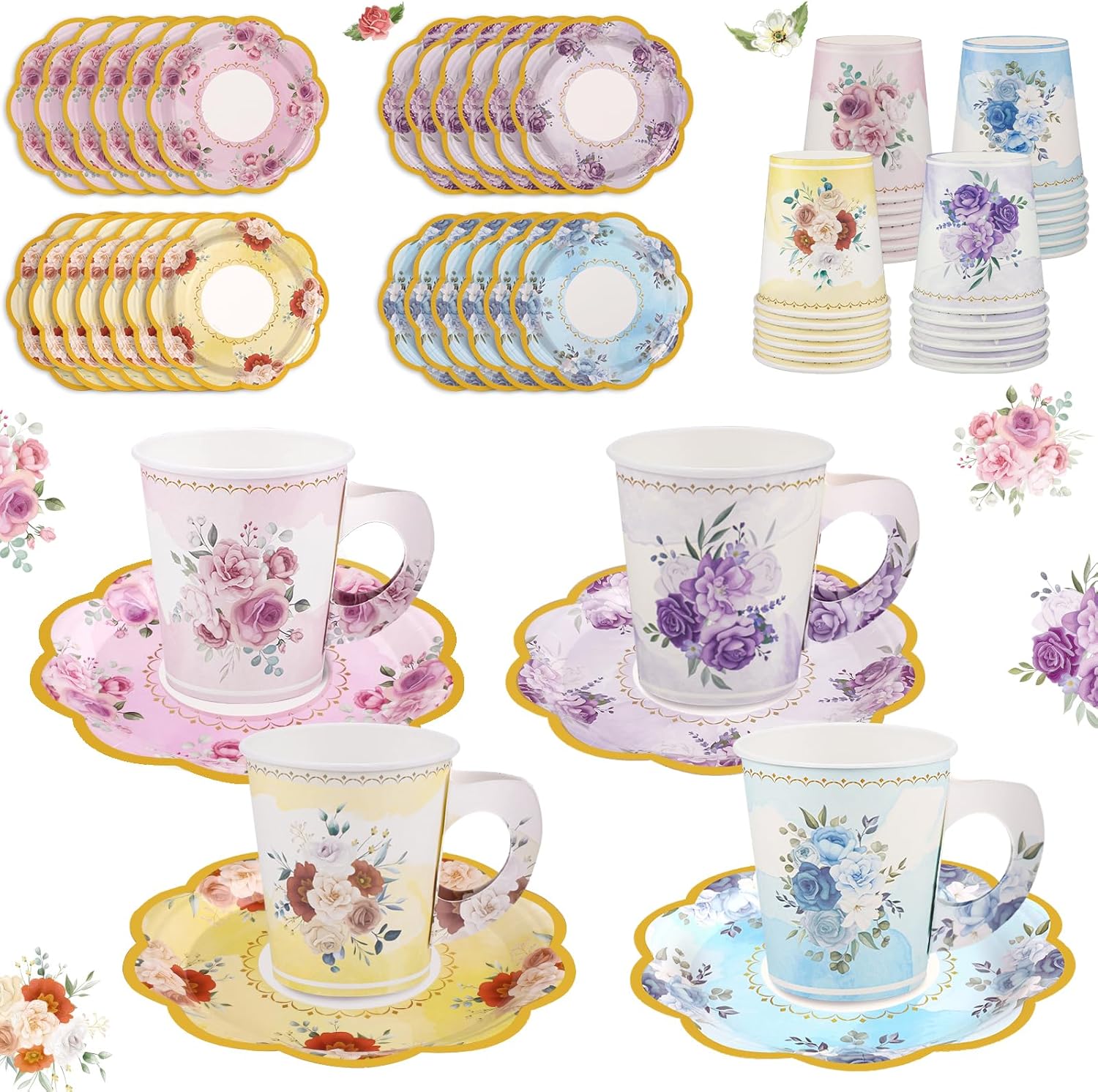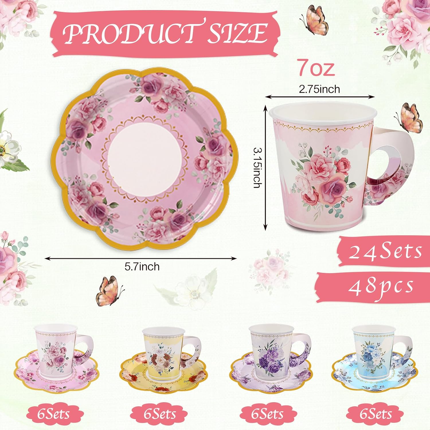 - 【Floral Theme Design】The tea party cups and saucers set is d with floral patterns, highlights the elegance and beauty of the tableware. The disposable tea cups are d with handles to better decorate the party table.