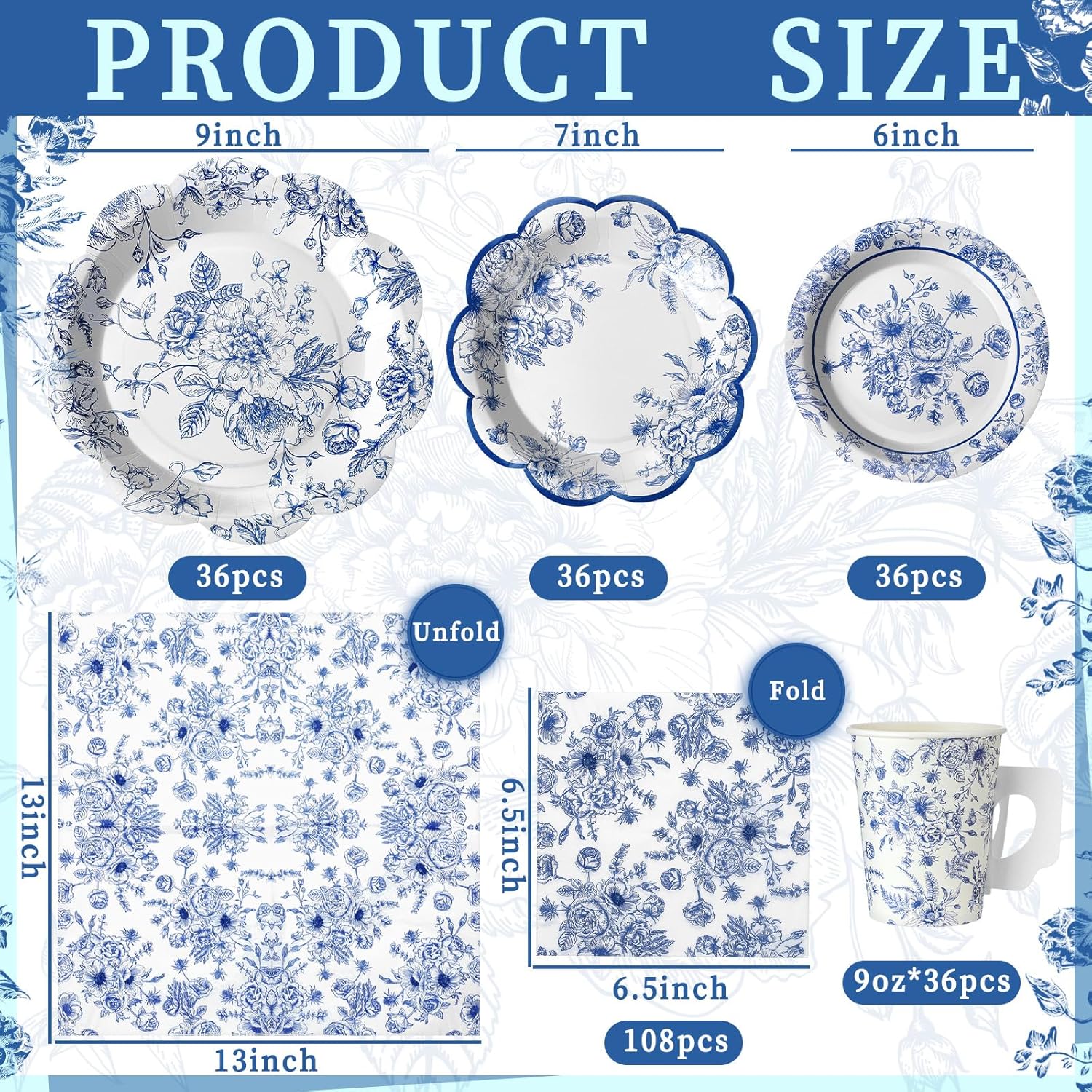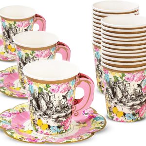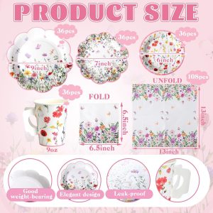 - Complete Tea Party Set: this delightful set includes 36 floral paper tea cups with elegant handles, 36 beautiful 9-inch flower tea plates, 36 charming 7-inch tea trays, and 108 vibrant flower napkins; Nice for accommodating up to 36 guests, this tea party supply collection adds a pop of color and sophistication to your gatherings