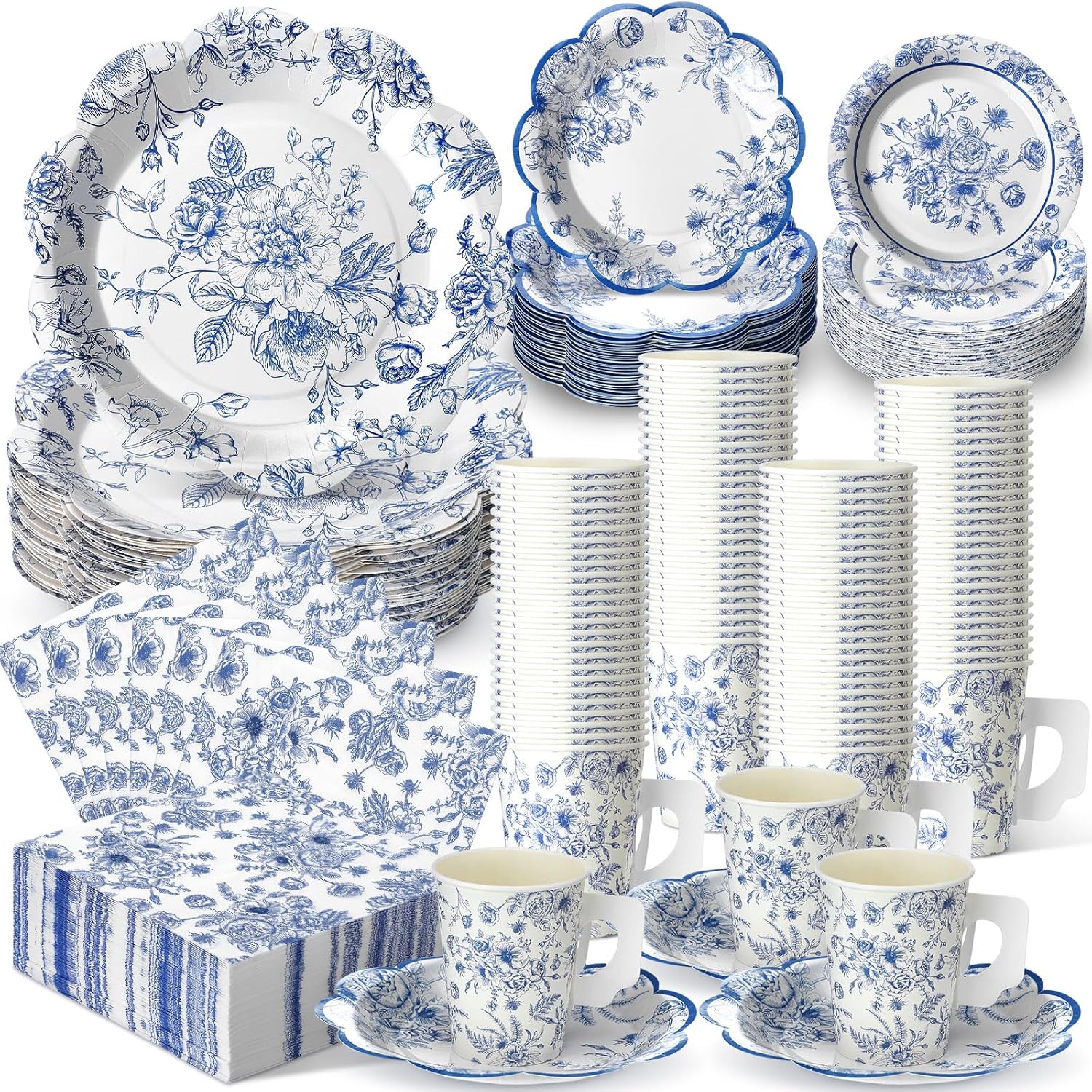 - Blue White Floral Design: our paper tea cups and plates are adorned with exquisite Blue Floral, elevating your table setting; The handle on the tea cups not only provides grip but also enhances the aesthetic of your tea party, creating a lively atmosphere and inviting visual experience